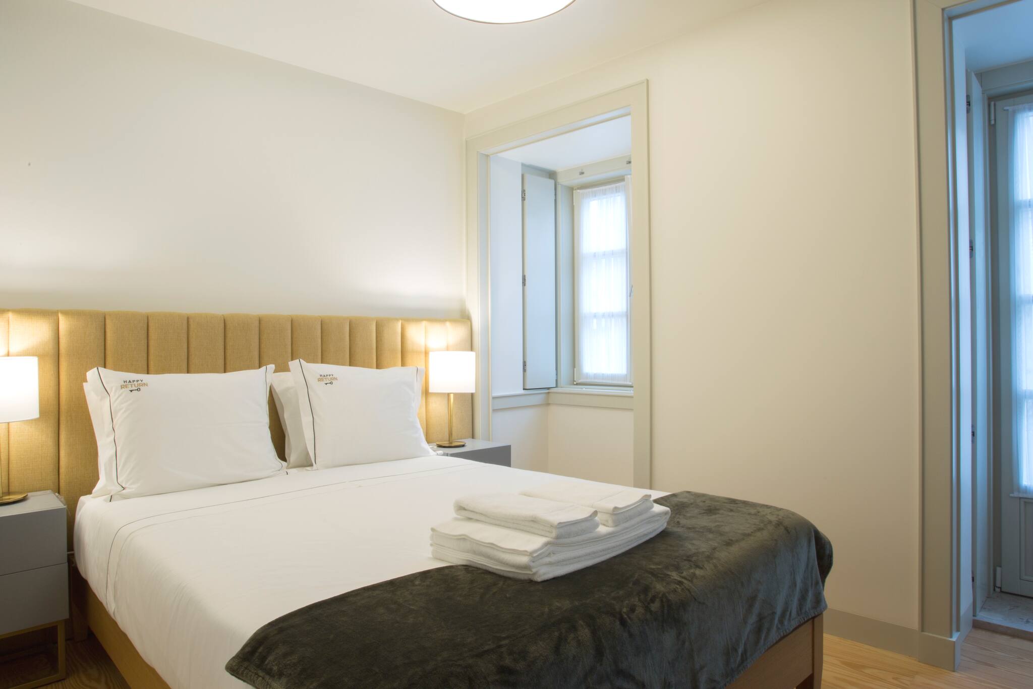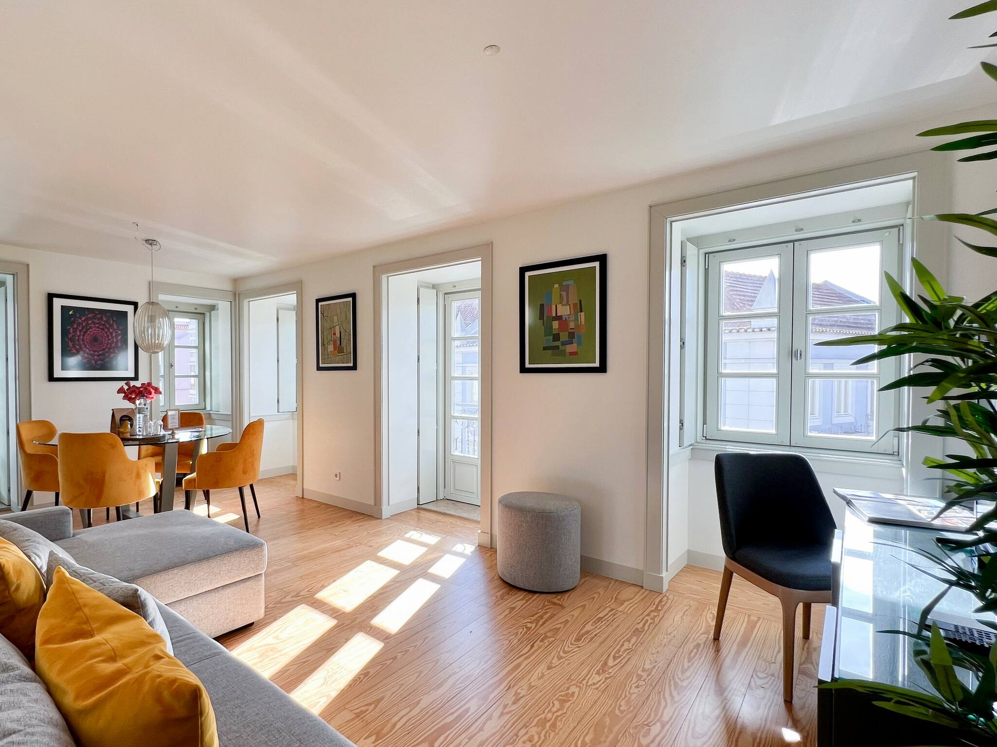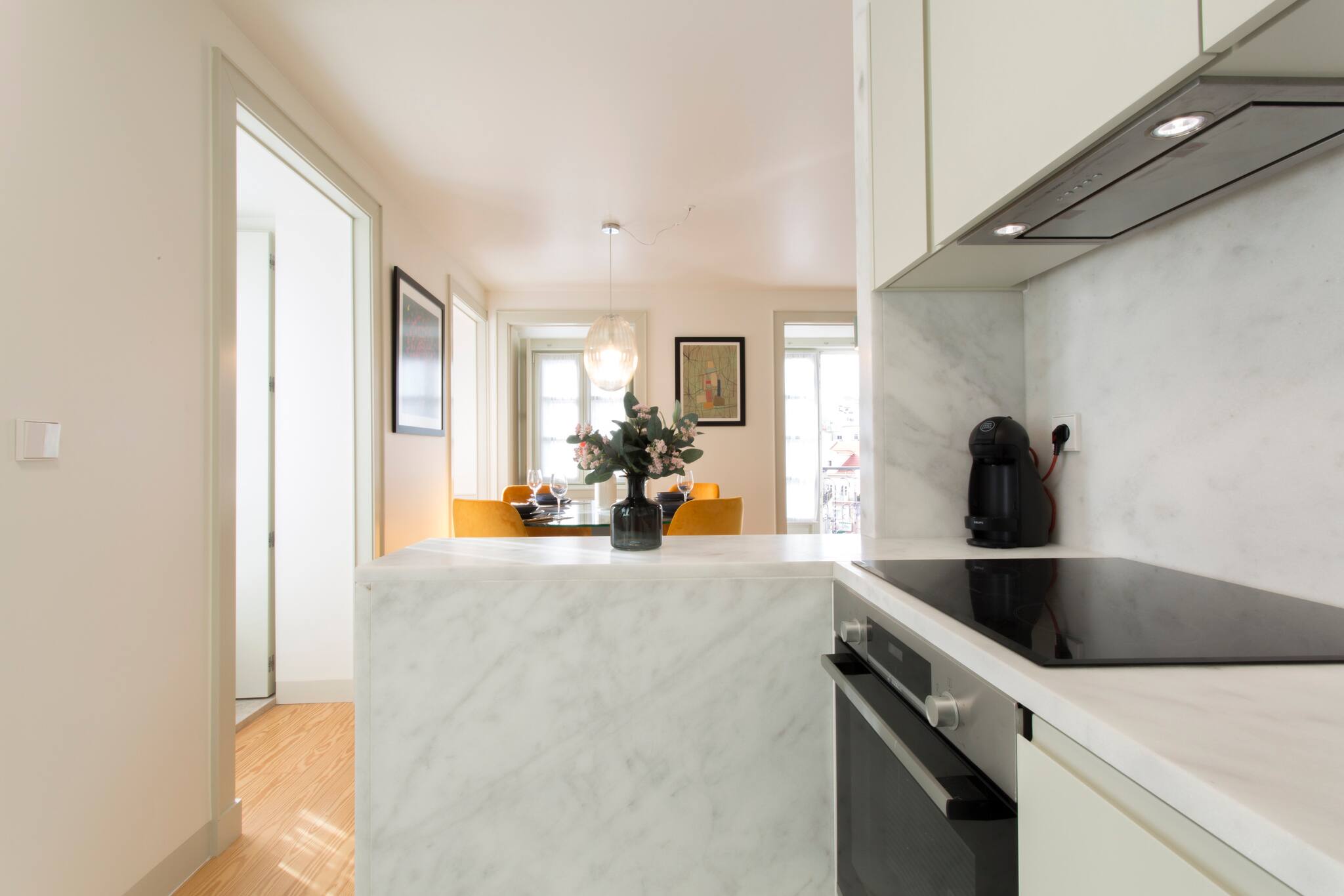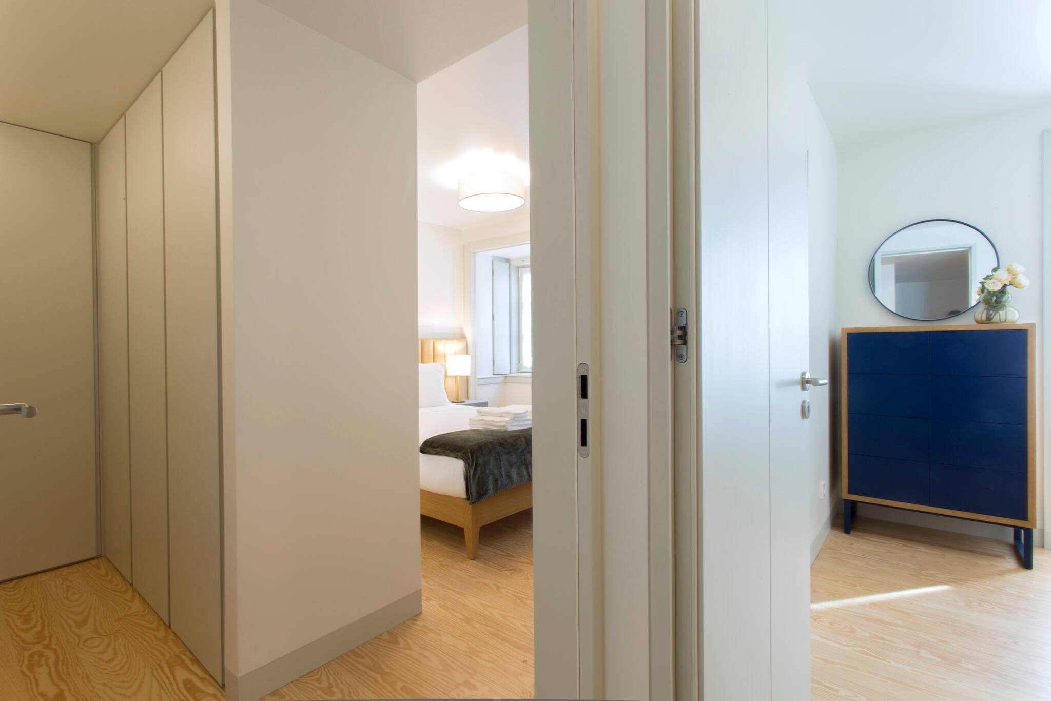 O apartamento conta com dois quartos confortáveis, oferecendo flexibilidade de acomodação: um quarto com cama de casal e outro com duas camas individuais. A luminosidade e o design moderno criam um ambiente acolhedor e relaxante, perfeito para descansar após um dia explorando a vibrante cidade de Lisboa.