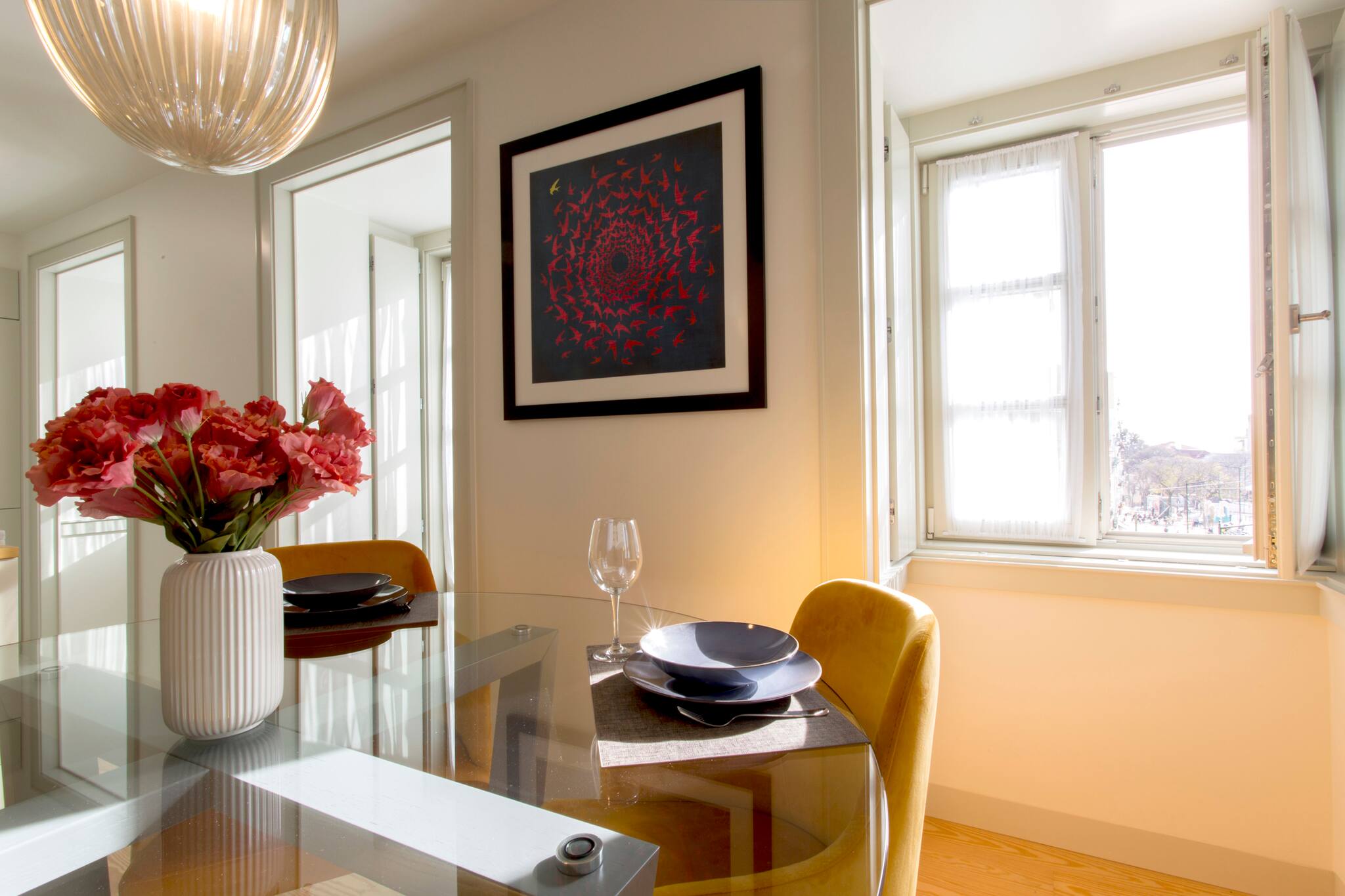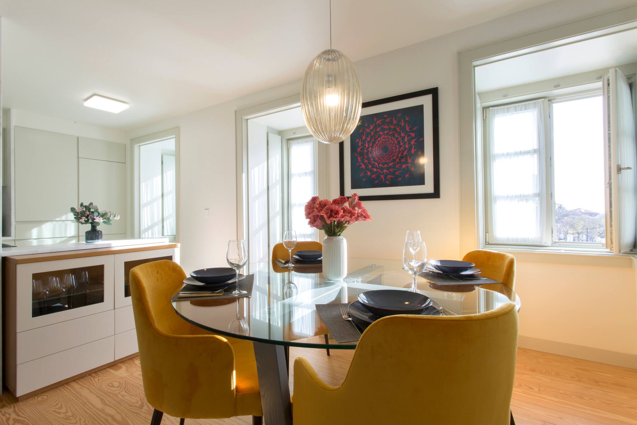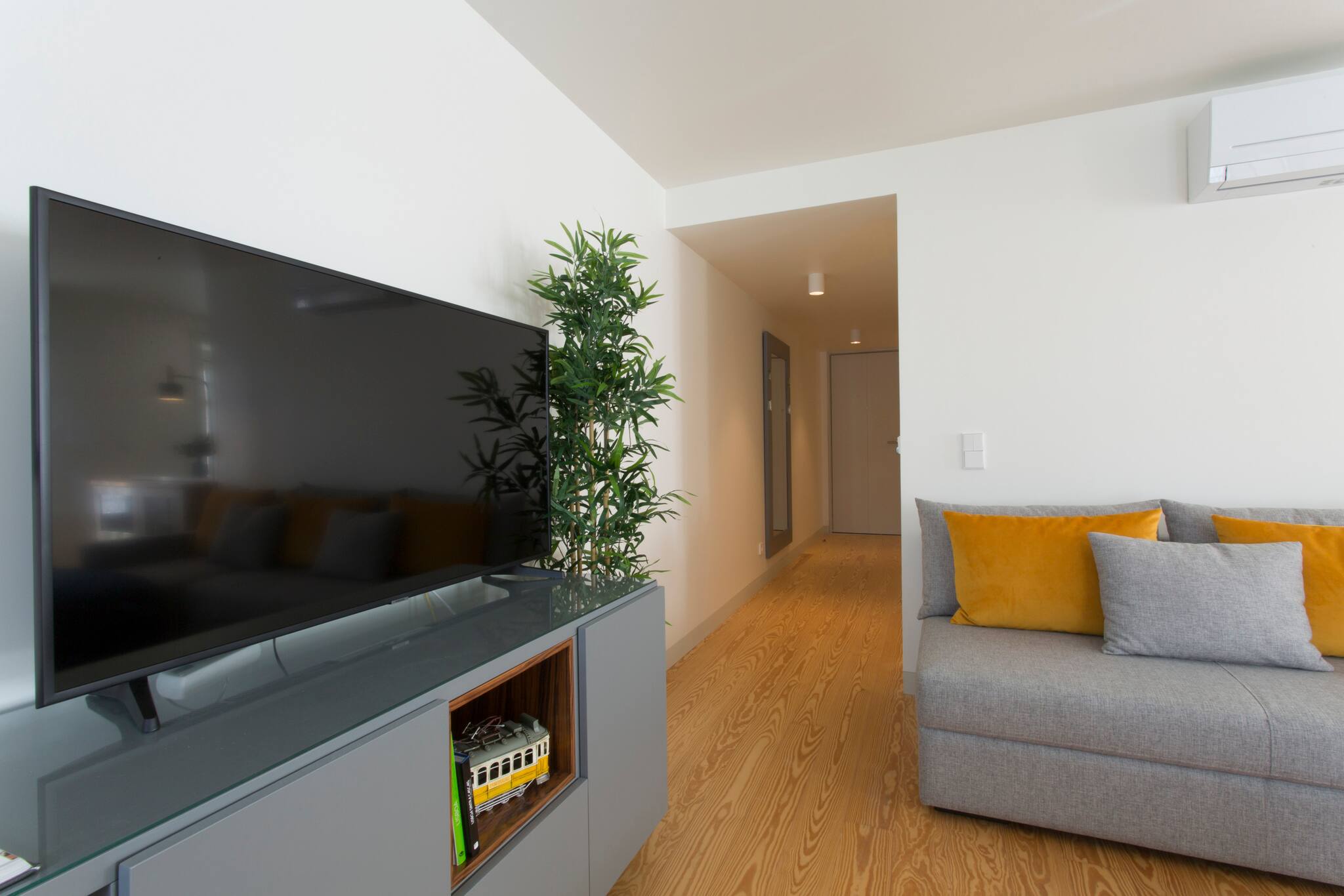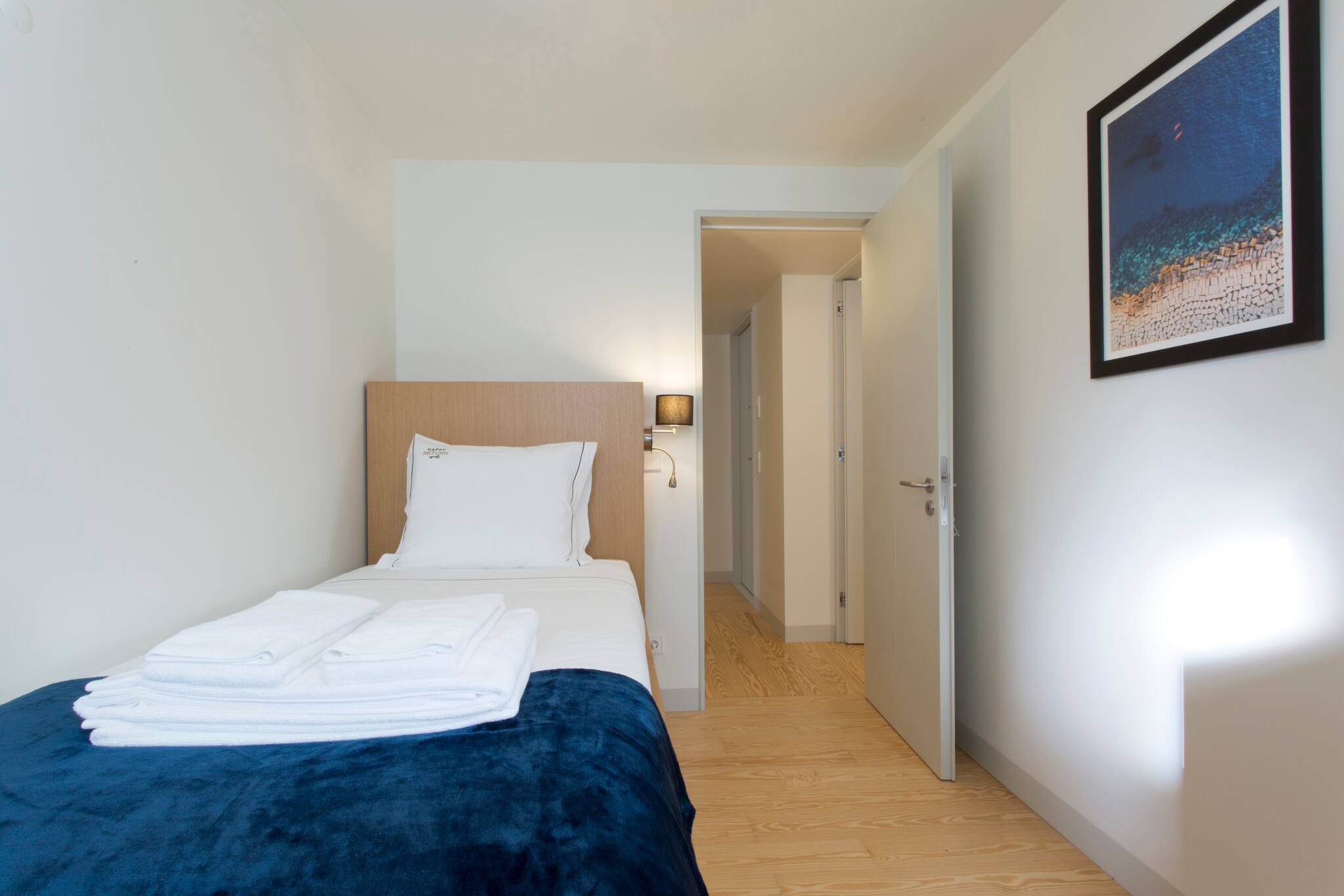 O apartamento conta com dois quartos confortáveis, oferecendo flexibilidade de acomodação: um quarto com cama de casal e outro com duas camas individuais. A luminosidade e o design moderno criam um ambiente acolhedor e relaxante, perfeito para descansar após um dia explorando a vibrante cidade de Lisboa.