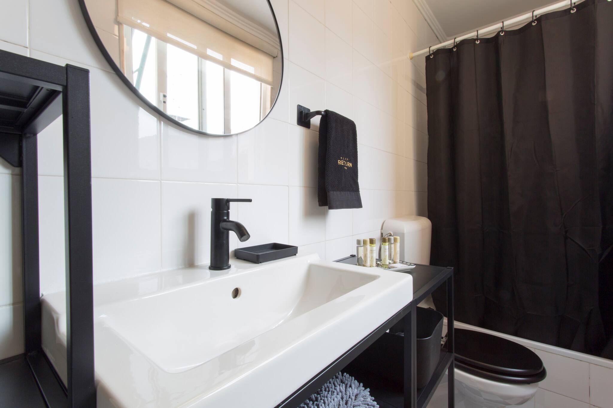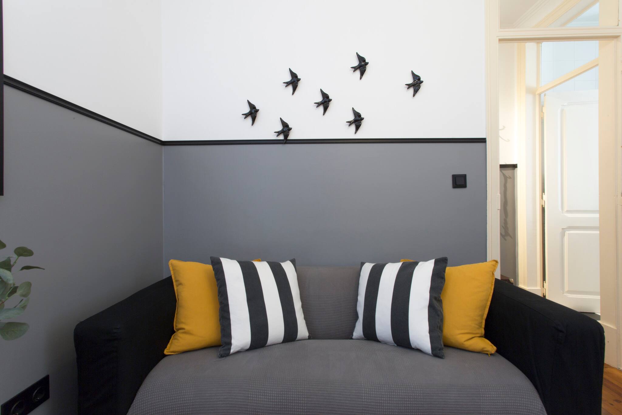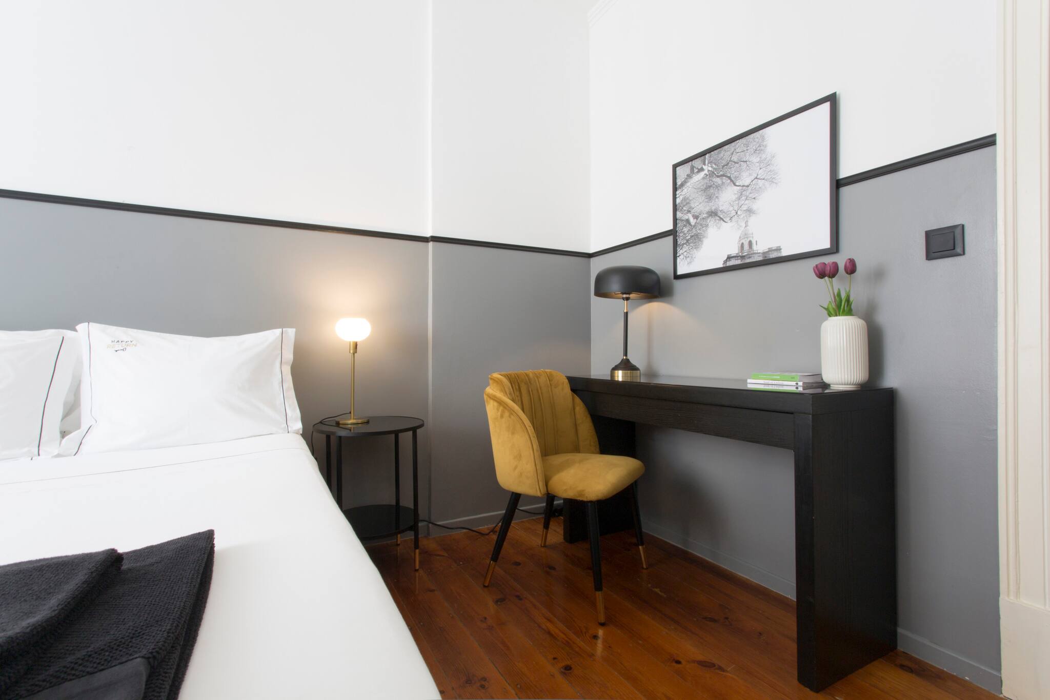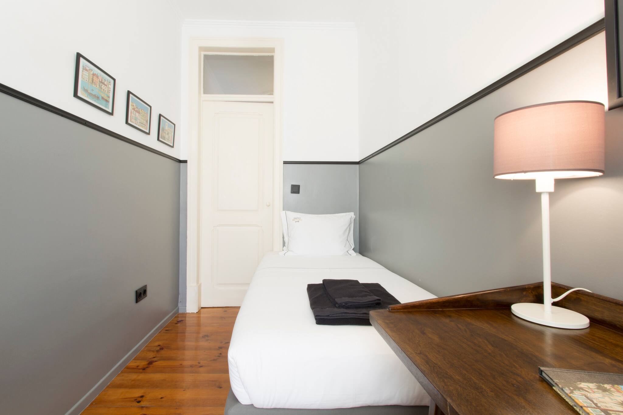 O apartamento conta com dois quartos confortáveis, oferecendo flexibilidade de acomodação: um quarto com cama de casal e outro com duas camas individuais. A luminosidade e o design moderno criam um ambiente acolhedor e relaxante, perfeito para descansar após um dia explorando a vibrante cidade de Lisboa.