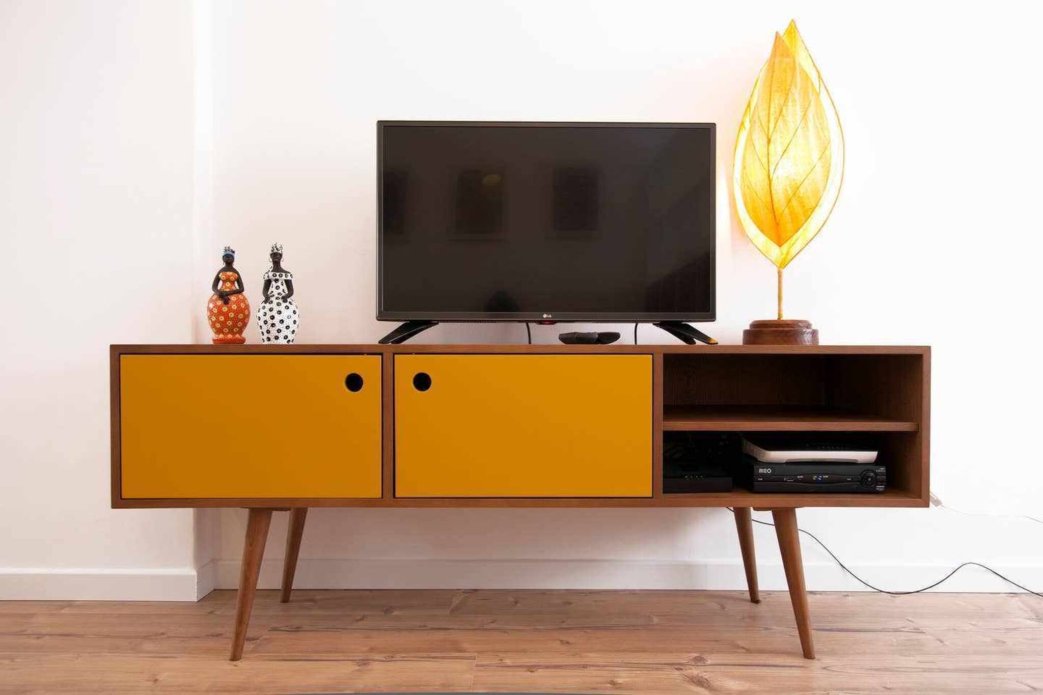 Os móveis de época ganharam uma nova vida com cores alegres e vibrantes que iluminam o ambiente, uma ligação do apartamento às suas origens, mas também criam um contraste elegante com estes móveis escolhidos cuidadosamente para complementar o estilo do espaço. A textura natural e o calor da madeira harmonizam-se perfeitamente com o restante design do apartamento, fazendo com que cada divisão exale personalidade e conforto.