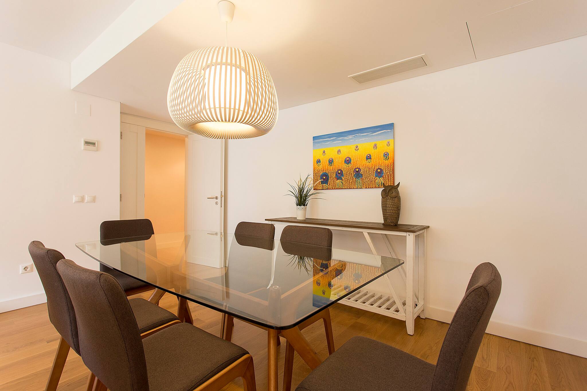 A cozinha totalmente equipada é um verdadeiro destaque, com todos os eletrodomésticos necessários para preparar refeições deliciosas: fogão, forno, máquina de lavar, máquina de lavar louça, frigorífico, máquina de café, torradeira e todos os utensílios de cozinha. Uma área de refeições completa o espaço, convidando a momentos de convívio.