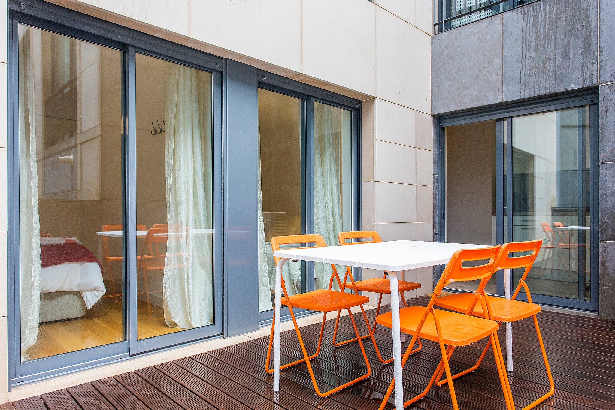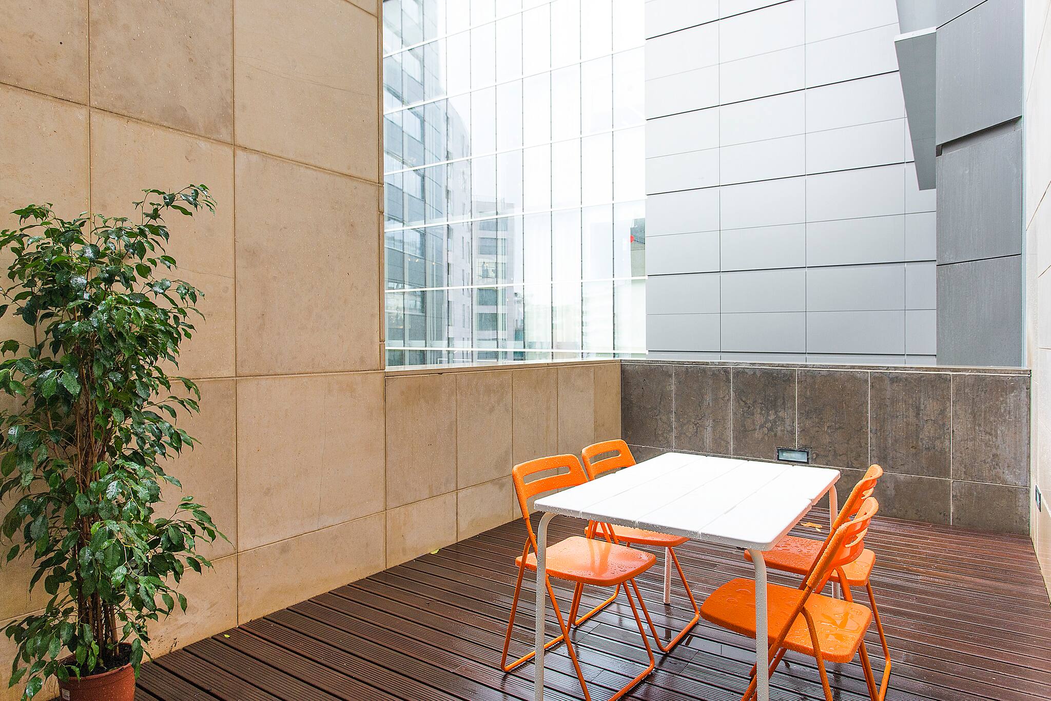 Comodidades essenciais como Wi-Fi, água quente, ferro de passar, cofre e kit de primeiros socorros estão disponíveis. O apartamento também oferece um espaço para refeições ao ar livre, ideal para aproveitar os dias ensolarados de Lisboa.