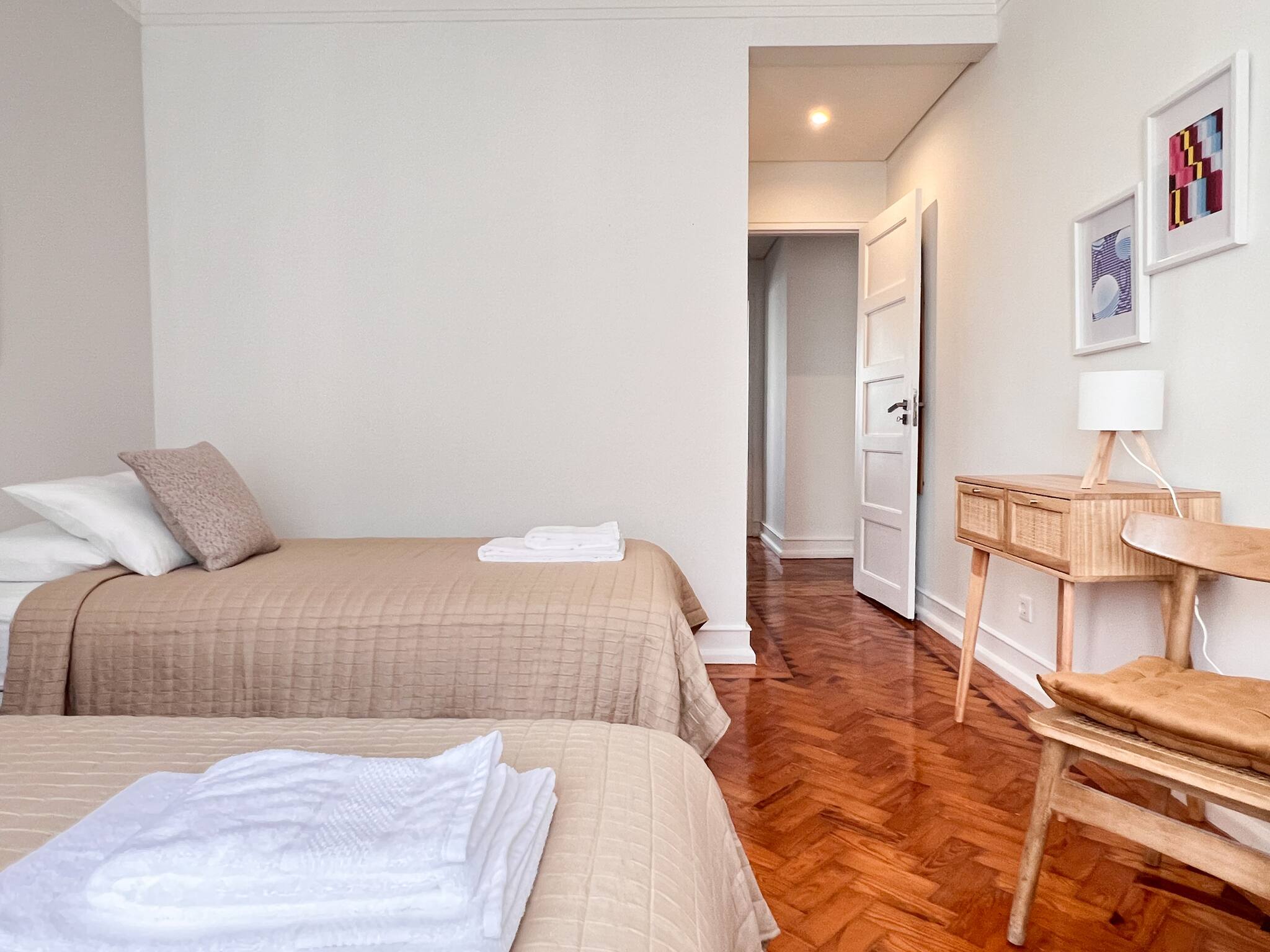 Quarto espaçoso com duas camas individuais, ideal para dois hóspedes.