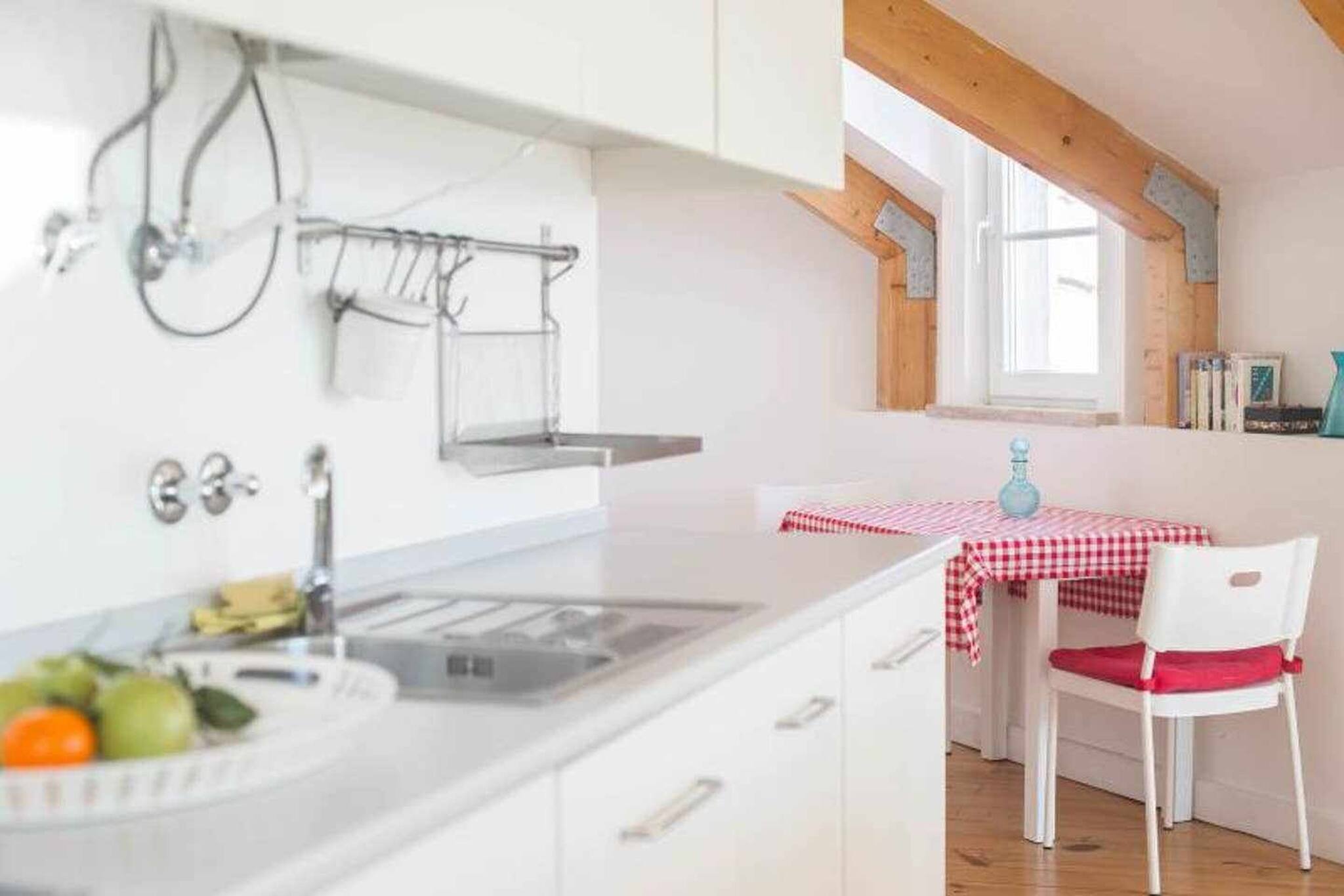 The apartment in Lisbon has 1 bedrooms and has capacity for 2 people. The apartment is 50 m². The accommodation is equipped with the following items: garden furniture, washing machine, iron, internet (Wi-Fi), hair dryer, balcony, electric heating, 1 fan, 1 TV, satellite tv (Languages: English).In the hotplate of glass ceramics open plan kitchen, refrigerator, microwave, oven, freezer, dishwasher, dishes/cutlery, kitchen utensils, coffee machine, toaster, kettle and hob are provided.