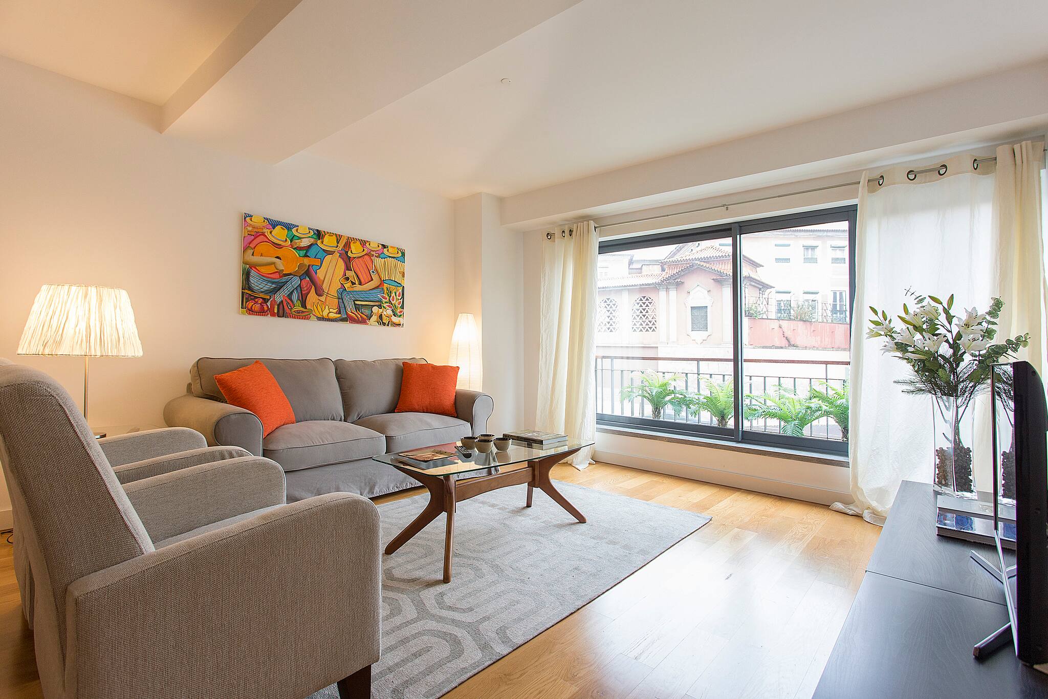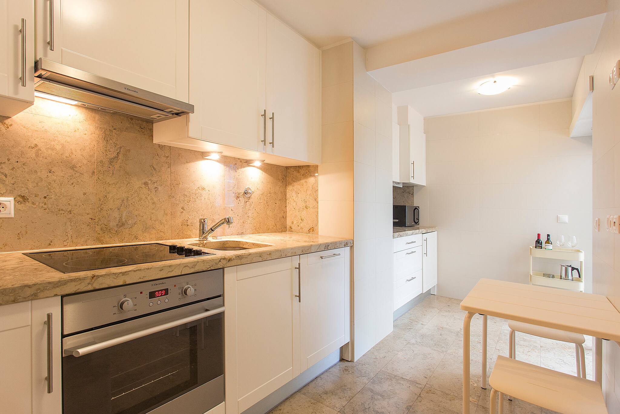 The apartment in Lisbon has 2 bedrooms and has capacity for 4 people. The apartment is 80 m². The accommodation is equipped with the following items: lift, garden furniture, terrace, washing machine, iron, internet (Wi-Fi), hair dryer, air-conditioned, communal swimming pool, garage the same building, 1 TV, satellite tv (Languages: English). In the hotplate of glass ceramics independent kitchen, refrigerator, microwave, oven, freezer, dishwasher, dishes/cutlery, kitchen utensils, coffee machine, toaster, kettle and hob are provided.